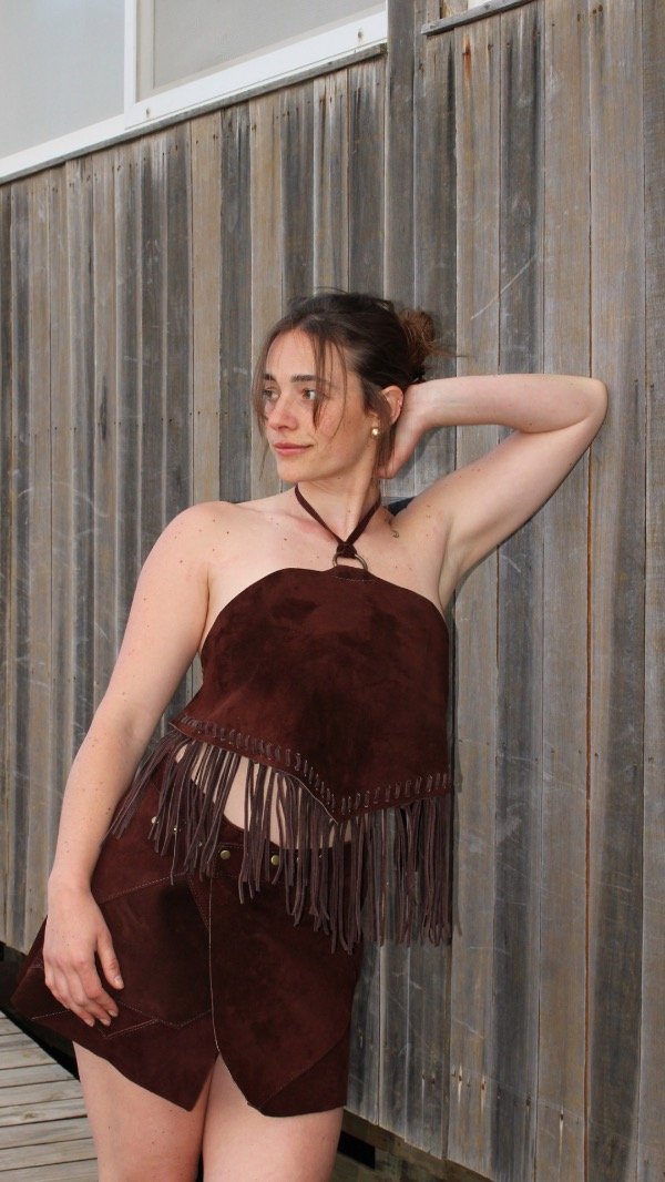 Trabajada con cueros rústicos, que hacen cada pieza única y distinta a la otra.