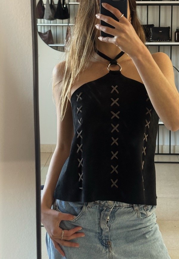 Trabajada con cueros rústicos, que hacen cada pieza única y distinta a la otra.